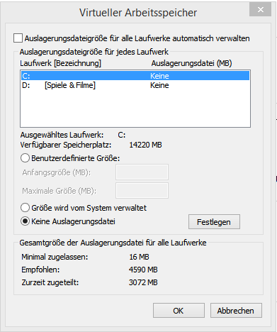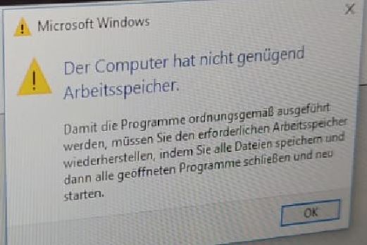 Der computer hat nicht genügend arbeitsspeicher speichern sie die dateien.